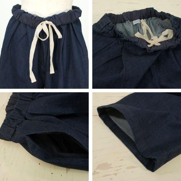 ウエストはゴムで仕上げ、内側の紐でサイズ調整が可能です。