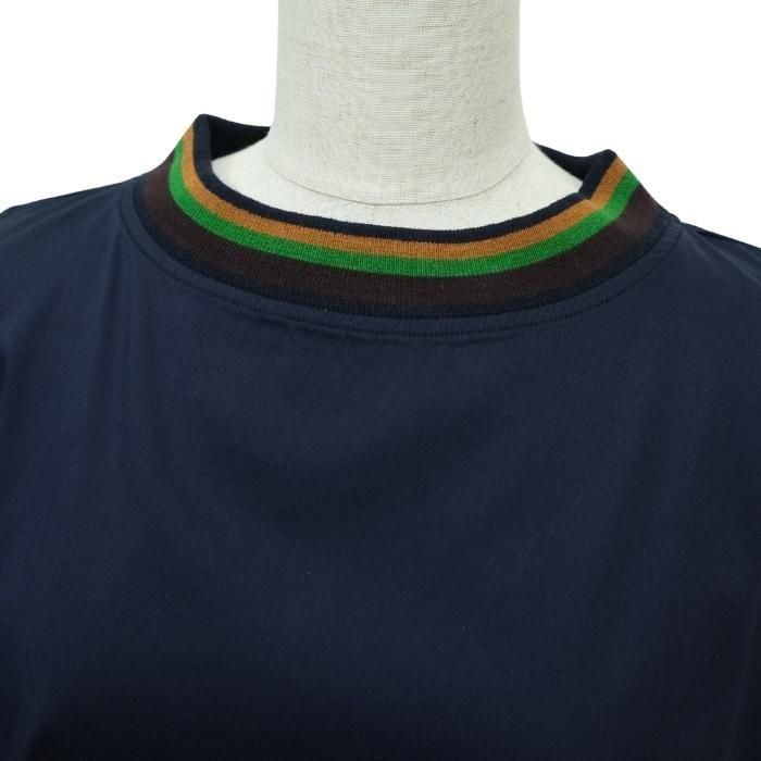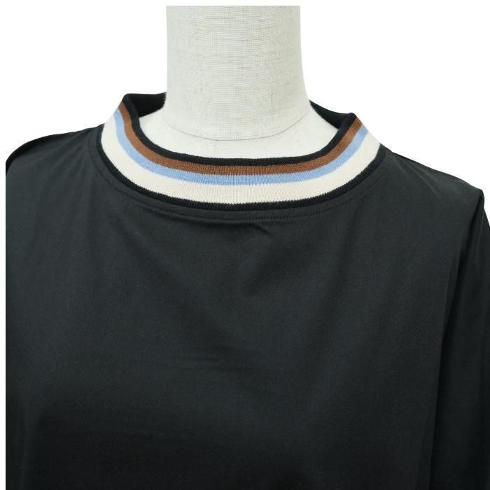 ライン入りリブの首元がアクセントになった