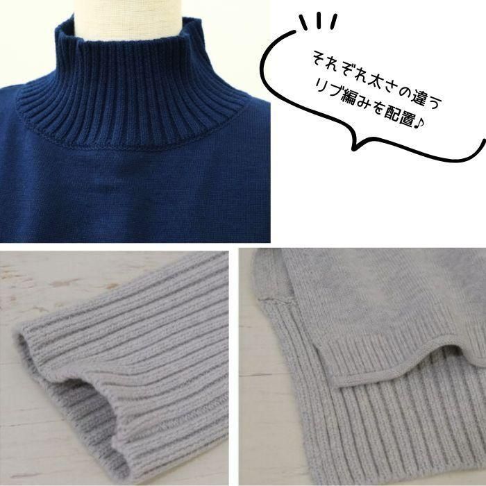 異ゲージリブのハイネックニットプルオーバーのご紹介です。